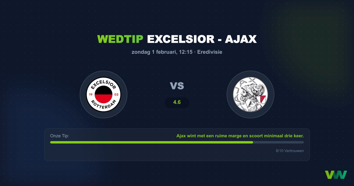 De Eredivisie brengt Ajax naar het Van Donge & De Roo Stadion, een plek waar de Amsterdammers historisch gezien zelden punten laten liggen. Ajax heeft de punten hard nodig om aansluiting te houden bij de top en kan zich geen misstap veroorloven tegen de Kralingers. Excelsior staat vaak onderin, maar speelt thuis soms onbevangen en probeert de aanval te zoeken, wat echter vaak ten koste gaat van de defensieve stabiliteit.