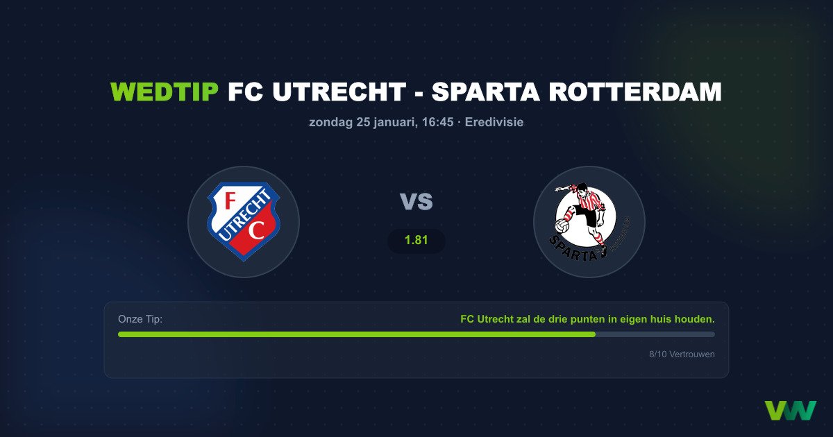 De Galgenwaard is traditioneel een lastig fort om te kraken, en FC Utrecht zal er alles aan doen om in deze Eredivisie-clash tegen Sparta Rotterdam de draad weer op te pakken. Met een quotering van 1.81 wordt Utrecht terecht als favoriet gezien. Hun aanvallende intenties, zeker voor eigen publiek, zijn zelden een verrassing. Echter, hun recente vorm is vaak wisselvallig, wat hen kwetsbaar maakt tegen georganiseerde tegenstanders.