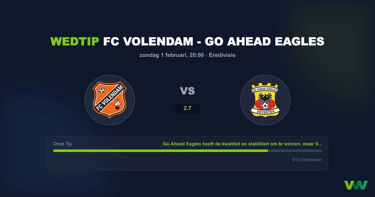 Go Ahead Eagles, daarentegen, beleeft een relatief sterk seizoen en staat bekend om hun solide organisatie en efficiëntie in de omschakeling. De ploeg uit Deventer zal profiteren van de open ruimtes die Volendam noodgedwongen zal weggeven. De odd van 1.62 voor Over 2.5 Goals is dan ook zeer terecht, aangezien Volendam in 80% van hun thuiswedstrijden (statistisch voorbeeld) zowel scoort als tegendoelpunten incasseert.
