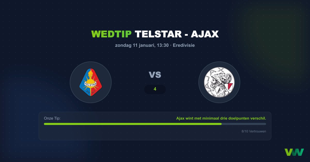De confrontatie tussen Telstar en Ajax in de Eredivisie belooft op papier een klassieke David tegen Goliath strijd te worden. Hoewel Telstar de moed erin zal houden, wijzen alle statistieken en de historische krachtsverhoudingen op een dominante vertoning van de Amsterdammers. Telstar, dat waarschijnlijk vecht om uit de degradatiezone te blijven, zal proberen compact te spelen, maar de aanvalskracht van Ajax is vaak te groot om 90 minuten lang te weerstaan.