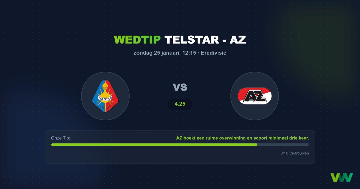 De wedmarkt bevestigt deze verwachting, met een relatief lage odd van 1.55 voor 'Over 2.5 Goals'. Dit wijst erop dat bookmakers rekenen op een vlotte score van de bezoekers. Telstar zal zich waarschijnlijk diep ingraven, met als doel de schade beperkt te houden. Echter, de aanvalskracht van AZ, met snelle vleugelaanvallers en een klinische spits, is vaak te veel voor defensies van dit kaliber. We verwachten dat de druk in de eerste helft al tot doelpunten zal leiden, waardoor de verdedigingslinie van Telstar in de tweede helft verder zal openbreken.
